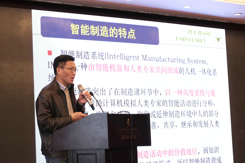 浙江大學機械工程學院教授、博士生導師楊將新教授解讀智能制造。他表示,智能制造是產品個性化的發展和生產模式的轉化,是質量優化、訂單優化、排產優化、人員利用率的提高,是形成新的價值鏈和售后服務的盡責。開展智能制造的三大關鍵是信息化技術、智造技術以及客戶需求。智能制造最終是向生產智能化、自動檢測、服務智能化方面發展。