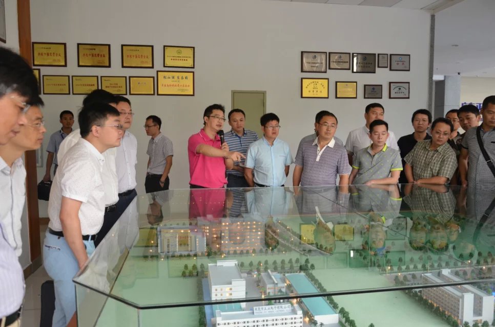 12日上午9:00,松山湖管委會卓主任、安創會董事長劉霖等一行40余人蒞臨正業科技松山湖總部。在正業科技技術企劃總監梅領亮的接待下,參會人員先參觀了正業科技產品展示廳、儀器裝備科技館,對正業科技從PCB材料到精密檢測設備,再到智能裝備和高端主材的發展歷程,有了一個直觀的體驗和深入的了解。